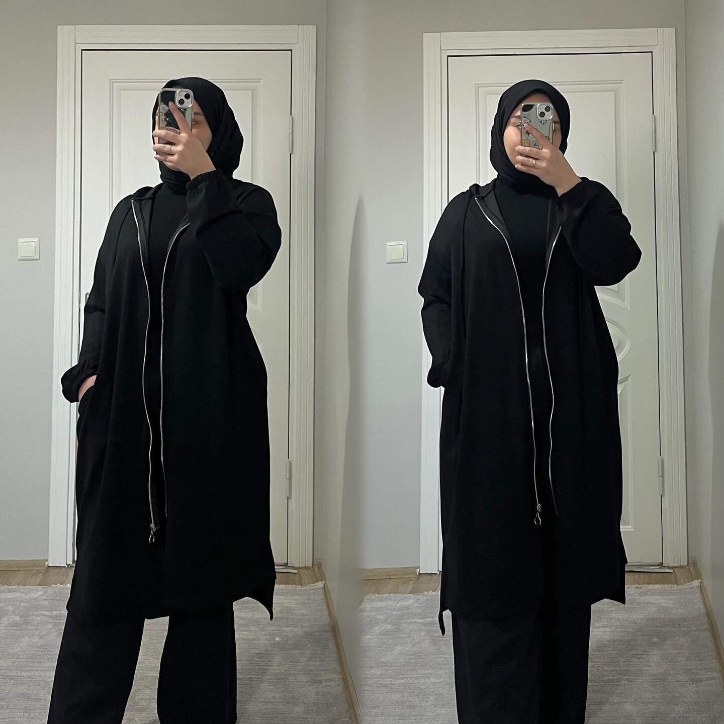 Dış giyimde konfor ve zarafeti birleştiren özel bir parça arıyorsanız, bu siyah Oysho kumaş kap tam size göre!